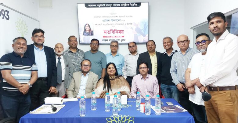 লন্ডন বাংলা প্রেসক্লাবের উদ্যোগে “অনুসন্ধানী সাংবাদিকতায় প্রতিবন্ধকতা ও করণীয়” শীর্ষক এক মতবিনিময় সভায় এসব কথা বলেন অনুসন্ধানী সাংবাদিক রোজিনা ইসলাম।
