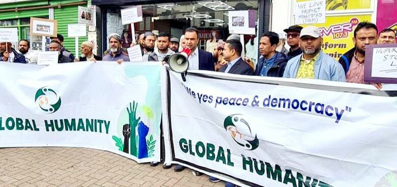 মহানবী হজরত মোহাম্মদ (সা.) ও হজরত আয়েশা (রা.) কে নিয়ে ভারতের ক্ষমতাসীন দুই বিজেপি নেতার কূরুচিপূর্ণ মন্তব্যের প্রতিবাদে মানবন্ধন ও বিক্ষোভ সমাবেশ করেছে মানবাধিকার সংগঠন গ্লোবাল হিউমিনিটি