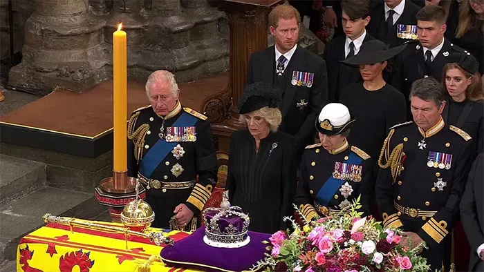 প্রতিবেদনে বলা হয়েছে, ওয়েস্টমিনস্টার অ্যাবেতে ধর্মীয় নেতারা রানির প্রতি শ্রদ্ধা, তার অবদান, প্রার্থনা জানিয়েছেন। এ সময় দুই মিনিট নীরবতা (দেশব্যাপী) পালন করা হয়। এরপর সেখানে গড সেভ দি কিং বাজানো হয় তখন রাজাকে কান্নাজড়িত অবস্থায় দেখা গেছে।