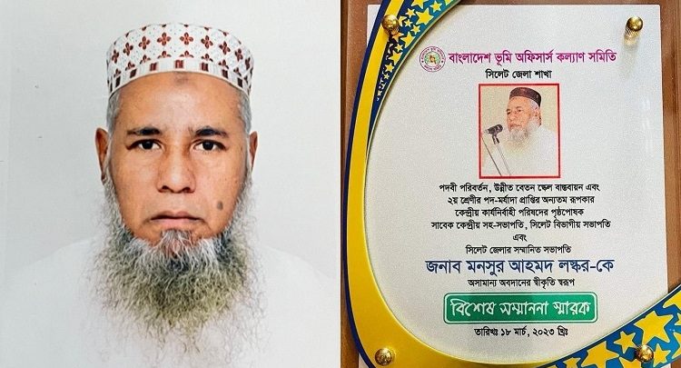 জকিগঞ্জ: বর্ণাঢ্য কর্মজীবনের স্বীকৃতি স্বরূপ মনসুর আহমদ লস্কর-কে সম্মাননা