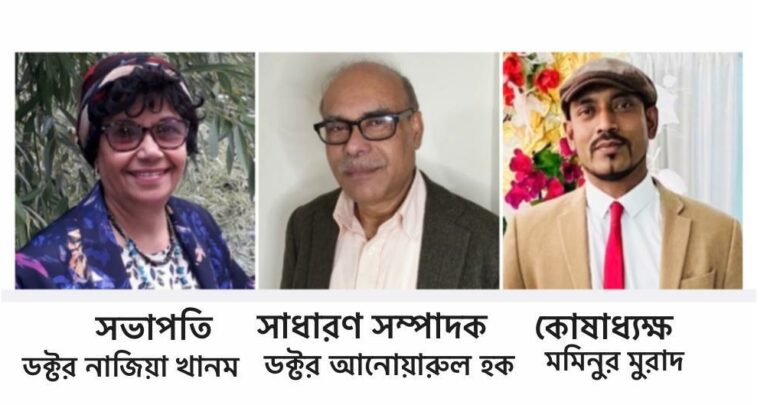 সভাপতি ডক্টর নাজিয়া খানম ওবিই ডিএল, সহ সভাপতি শাহনাজ সাদ ও মোয়াজজেম হোসেন, সাধারণ সম্পাদক ডক্টর আনোয়ারুল হক, যৌথ সাধারণ সম্পাদক এ হাদি ফয়সাল, কোষাধ্যক্ষ মমিনুর মুরাদ, যৌথ কোষাধ্যক্ষ শাফিনাজ পেইন, সামাজিক ও সাংস্কৃতিক সম্পাদক খান মাজুবা, যৌথ সামাজিক ও সাংস্কৃতিক সম্পাদক সুলতানা ফেরদৌসি, সদস্য বিষয়ক সম্পাদক জিনাত মান্নান, যৌথ সদস্য বিষয়ক সম্পাদক ফারহানা চৌধুরী, প্রচার ও প্রসার সম্পাদক মেহেদি কবির, যৌথ প্রচার ও প্রসার সম্পাদক এম আবদুল মতিন। এছাড়া নির্বাহী সদস্য হিসেবে ফাতেমা ইসলাম, এম আব্দুর রাকিব, শৌকাতুর রহমান শাহিন, এম ফরিদ আহমেদ, তাহির খান ও উর্মিলা আফরোজকে নির্বাচিত করা হয়।