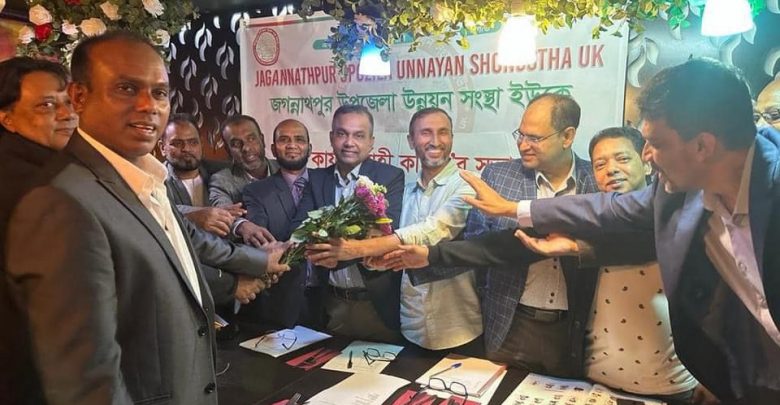 লন্ডনস্থ লি মেডিসন রেস্টুরেন্টে ২৬শে সেপ্টেম্বর ২০২৩, ঐতিহ্যবাহী জগন্নাথপুর উপজেলা উন্নয়ন সংস্থার কার্যনির্বাহী কমিটির প্রথম সভা অনুষ্ঠিত হয়।উক্ত সভায় সভাপতিত্ব করেন জগন্নাথপুর উন্নয়ন সংস্থার নব নির্বাচিত চেয়ারম্যান মোঃ চন্দন মিয়া , অনুষ্ঠানটি পরিচালনা করেন সাধারণ সম্পাদক সৈয়দ আশফাক আহমদ। উক্ত সভায় পবিত্র কোরআন থেকে তেলোয়াত করেন অফিস ও ওয়েলফেয়ার সেক্রেটারী আবু তাহির আজিজ ।শুরুতেই উন্নয়ন সংস্থার বিদায়ী কমিটি নব নির্বাচিত কমিটিকে ফুলের তোড়া দিয়ে বরণ করেন। স্বাগত বক্তব্য রাখেন উন্নয়ন সংস্থার নির্বাচিত চেয়ারম্যান মোঃ চন্দন মিয়া ।সভায় সর্বসম্মতিক্রমে ৯ সদস্য বিশিষ্ট একটি উপদেষ্টা পরিষদ গঠন করা হয় ।সভায় বক্তব্য রাখেন সংগঠনের ট্রেজারার আব্দুল মুমিন, সিনিয়র ভাইস চেয়ারম্যান বশির মিয়া , সাবেক চেয়ারম্যান মুজিবুর রহমান মুজিব, সাবেক সাধারন সম্পাদক শফিউল আলম বাবু, সাবেক ভাইস চেয়ারম্যান মিড সাসেক্স ডিসট্রিক্ট কাউন্সিল ও বারজেস হিল কাউন্সিলের কাউন্সিলার ও ডেপুটি মেয়র মোঃ তফজ্জুল হোসেন , ভাইস চেয়ারম্যান আলমগীর হোসেন, ভাইস চেয়ারম্যান মোঃ তফজ্জুল হোসেন, ভাইস চেয়ারম্যান হোসেন আহমদ, ভাইস চেয়ারম্যান আবুল খায়ের,সাবেক ট্রেজারার সৈয়দ জামিল ,জয়েন্ট সেক্রেটারী আবুল হোসেন, সাংগঠনিক সম্পাদক ফয়জুর রহমান,ইসি সদস্য বদর সামসুদ্দীন , ই সি সদস্য মোস্তাকুজ্জামান খোকন।