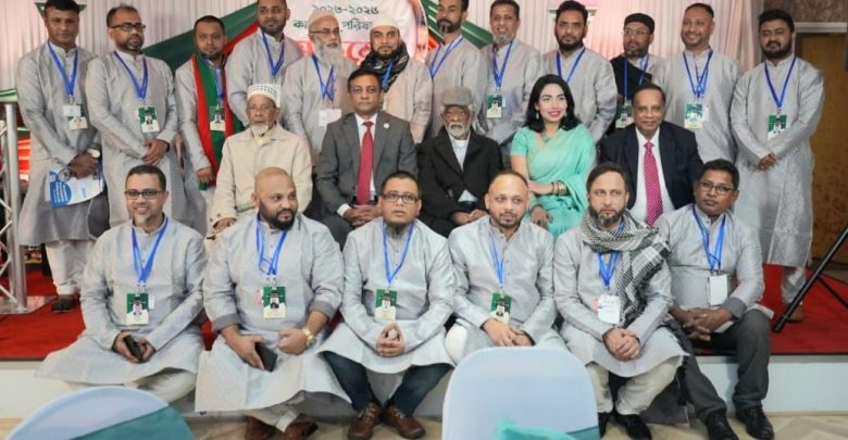 প্রধান অতিথি সহকারী হাইকমিশনার মো. আলীমুজ্জামান, প্রবীণ কমিউনিটি ব্যক্তিত্ব আলহাজ্ব নাসির আহমদ ও আজির উদ্দিন মঞ্চে উপবিষ্ট থেকে নবনির্বাচিত কার্যকরী পরিষদের সকল দায়িত্বশীলদের গলায় ব্যাজ পরিয়ে পরিচয় করিয়ে দেন।