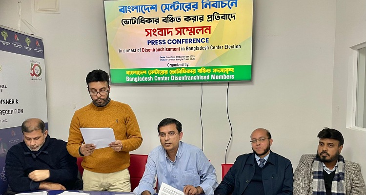 ২১ নভেম্বর লন্ডন বাংলা প্রেসক্লাবে অনুষ্ঠিত এই সংবাদ সম্মেলনের আয়োজন করে বাংলাদেশ সেন্টারের ভোটাধিকার বঞ্চিত সদস্যরা। ‘বাংলাদেশ সেন্টারের নির্বাচনে ভোটাধিকার বঞ্চিত করার প্রতিবাদ’ শীর্ষক এই সংবাদ সম্মেলনে বলা হয়, বিদ্যমান নিয়ম-কানুনের তোয়াক্কা না করে কতিপয় দায়িত্ববান নিজেদের মনগড়া নিয়মে মেম্বারশিপের সিদ্ধান্ত নিয়েছেন। নিজেদের পছন্দের মানুষকে সদস্য বানানোর মাধ্যমে দীর্ঘমেয়াদে বাংলাদেশ সেন্টারকে নিজেদের দখলে রাখার পায়তারা করা হচ্ছে বলে অভিযোগ তোলা হয় সংবাদ সম্মেলনে। তালিকায় সাধারণ সদস্য, লাইফ মেম্বার ও পার্মানেন্ট মেম্বার মিলিয়ে নবাগত মোট ৪৪ জনের নাম নেই বলে অভিযোগ।