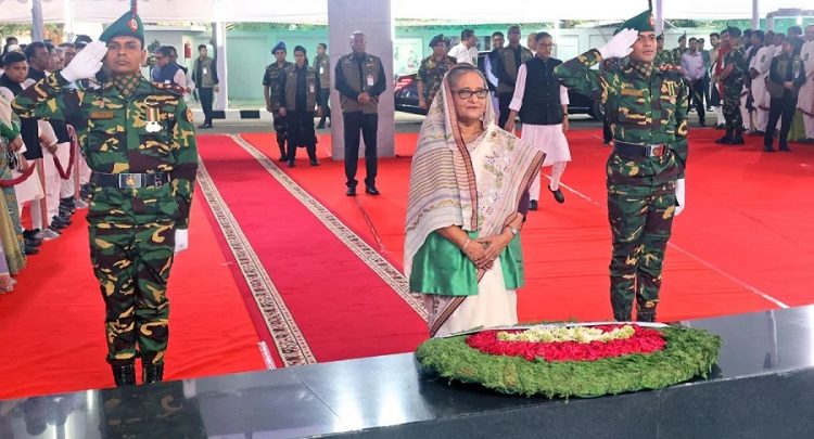 মুজিবনগর দিবস: বঙ্গবন্ধুর প্রতিকৃতিতে প্রধানমন্ত্রীর শ্রদ্ধা