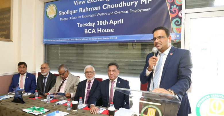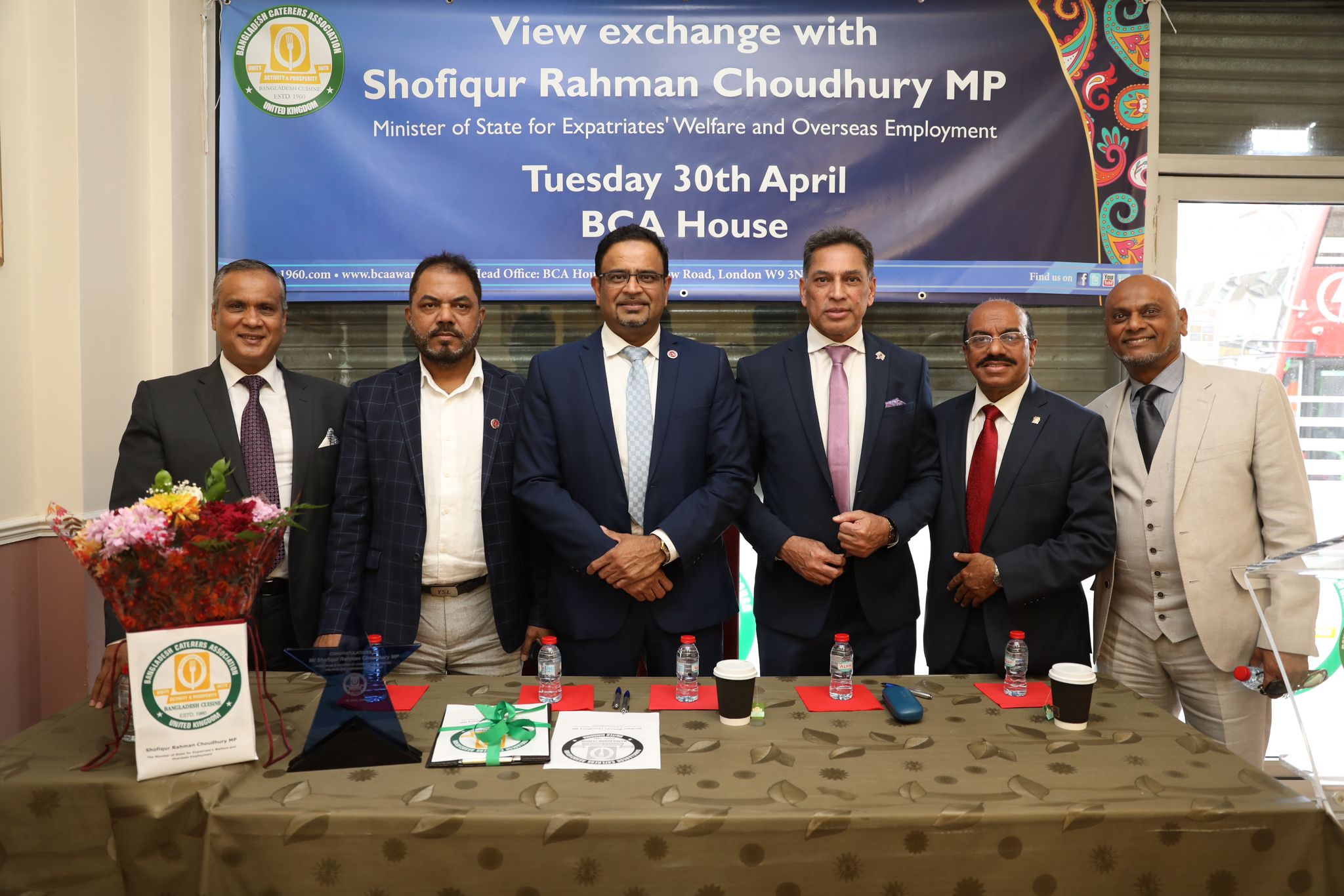 ৩০ এপ্রিল মঙ্গলবার বিসিএর লণ্ডনের হ্যারো রোডস্থ কার্যালয়ে বিসিএ প্রেসিডেন্ট ওলী খান এমবিই‘র সভাপতিত্বে ও সেক্রেটারী জেনারেল মিঠু চৌধুরীর সঞ্চালনায় অনুষ্ঠানে প্রধান অতিথি প্রতিমন্ত্রী শফিকুর রহমান চৌধুরী এমপির কাছে বিসিএর পক্ষ থেকে বিভিন্ন দাবী –দাওয়া ও বাংলাদেশে তাদের সম্ভাব্য বিনিয়োগ পরিকল্পনা তুলে ধরা হয়।