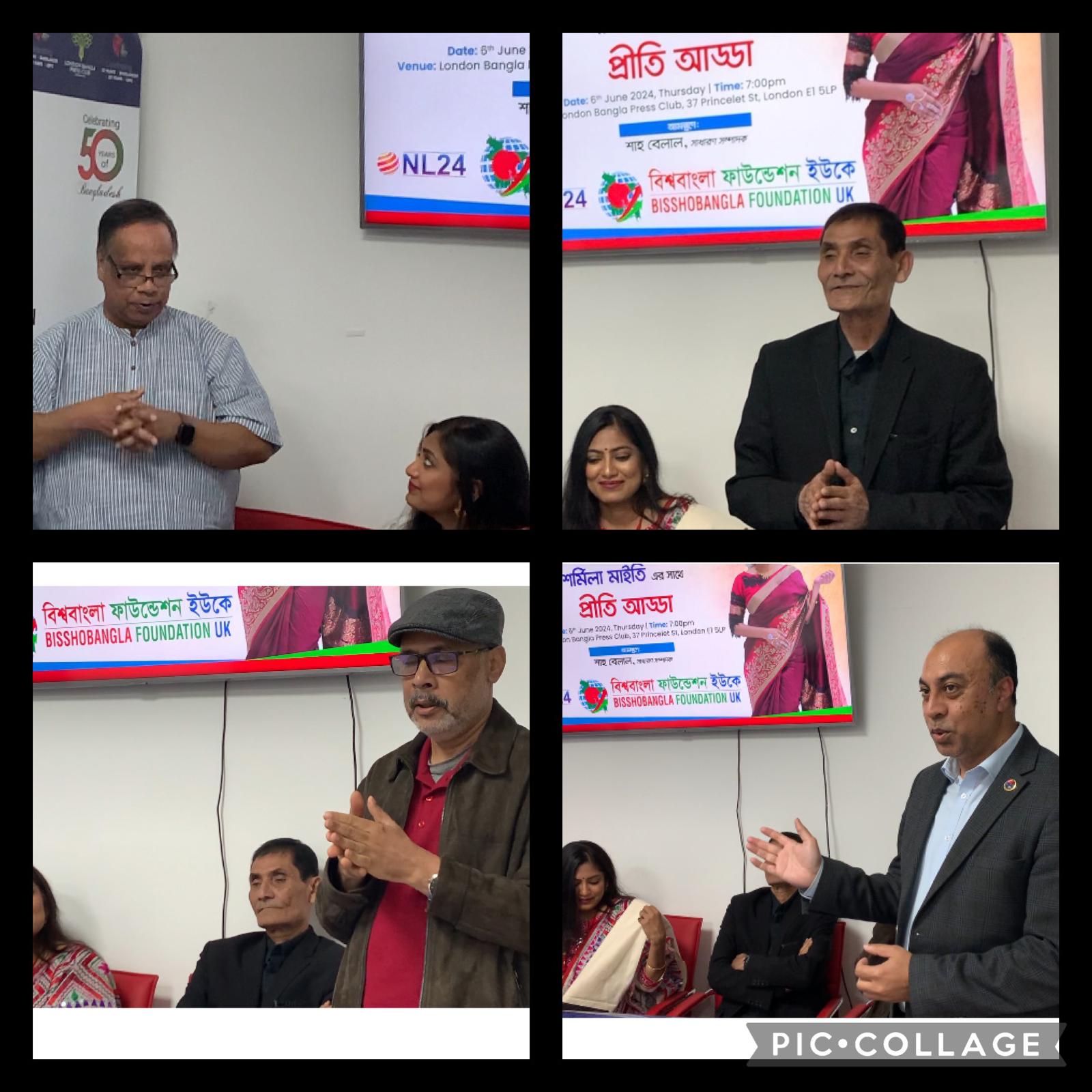 বিশ্ববাংলা ফাউন্ডেশনের প্রধান উপদেষ্টা প্রবীণ সাংবাদিক মতিয়ার চৌধুরীর সভাপতিত্বে ও সংগঠনের সেক্রেটারী শাহ মোস্তাফিজুর রহমান বেলালের সঞ্চালনায় অনুষ্ঠিত প্রীতি আড্ডায় বক্তব্য রাখেন লন্ডন বাংলাপ্রেস ক্লাবের সাবেক সভাপতি সৈয়দ নাহাশ পাশা, প্রবীণ সাংবাদিক নজরুল ইসলাম বাসন, সাংবাদিক মুসলেহ উদ্দিন আহমদ, টাওয়ার হ্যামলেটস কাউন্সিলের সাবেক স্পীকার আহবাব হোসেন,টাওয়ার হ্যামলেটস কাউন্সিলের মিডিয়া অফিসার সাংবাদিক মাহবুবুর রহমান, এটিএন বাংলা ইউকের সাংবাদিক মোস্তাক আলী বাবুল, সাংবাদিক আব্দুল কাদির চৌধুরী মুরাদ,সাংবাদিক হেফাজুল করিম রাকিব, কবি মুজিবুল হক মনি, সাংবাদিক মোস্তফা কামাল মিলন,সাংবাদিক তাবারুকুল ইসলাম পারভেজ,লেখক গবেষক প্রিয়জিত দেবসরকার , কমিউনিটি ব্যক্তিত্ব কিটন শিকদার,জালালাবাদ ফাউন্ডেশন ইউকে সম্পাদক আব্দুল বাছির, সাংবাদিক মরিয়ম রহমান পলি, সাংবাদিক জি আর সুহেল,সাংবাদিক আছাদুজ্জামান মুকুল, সাংবাদিক মহিদুল ইসলাম বাবলু, সাংবাদিক খালেদ মাসুদ রনি, মামুন কে চৌধুরী, সুরমান আলী,মাহমুদুর রহমান সানুর,সাংবাদিক আব্দুল হান্নান, সাংবাদিক সরওয়ার হোসেন, সাবেক কাউন্সিলার সাদ চৌধুরী, সাংবাদিক সাজিদুর রহমান, সাংবাদিক এম এ হান্নান, খালিছ মিয়া, কবি আসমা মতিন, শরমিষ্টা হালদার,আব্দুস সত্তার, আমিনুল হক জিলু প্রমুখ।