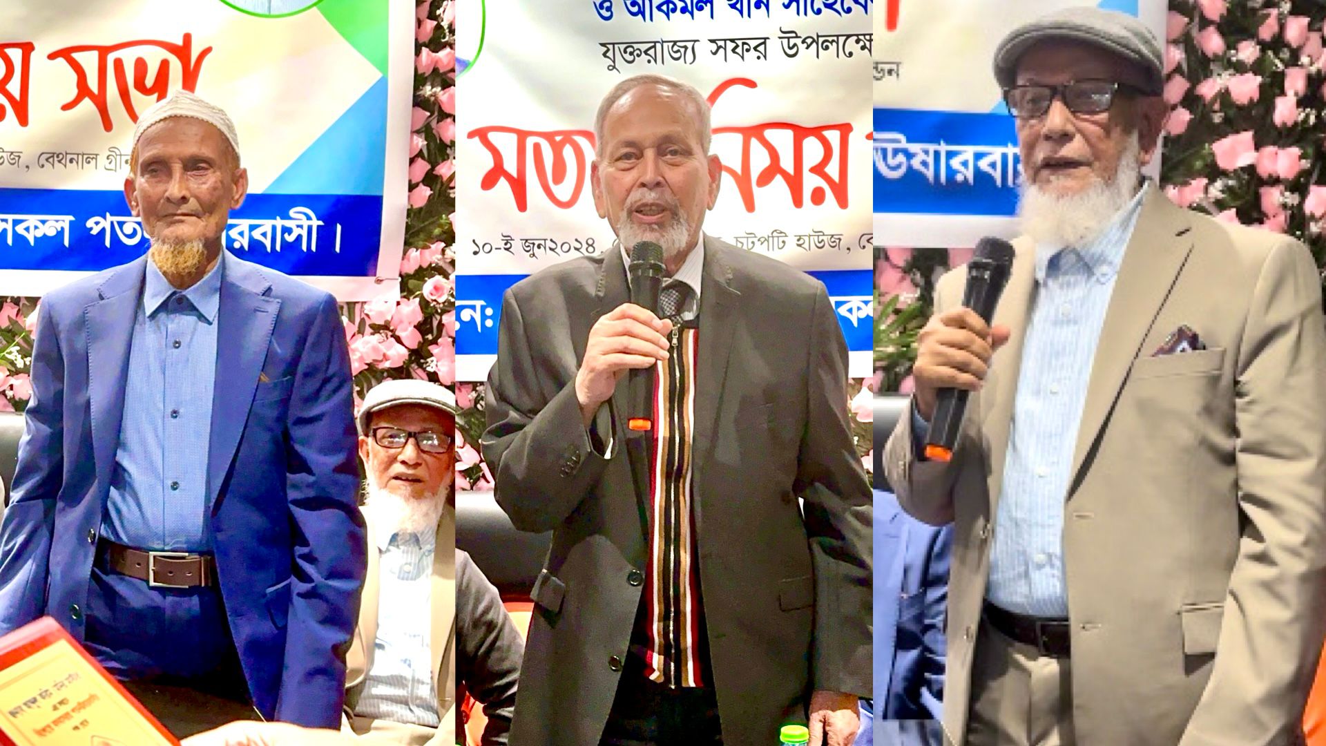 বিশিষ্ট শিক্ষাবিদ অবসর প্রাপ্ত শিক্ষক আব্দুল করিম (মনির মাস্টার) ও আকমল খাঁনের সাথে লন্ডনে পতনঊষার এলাকা বাসীদের মত বিনিময়