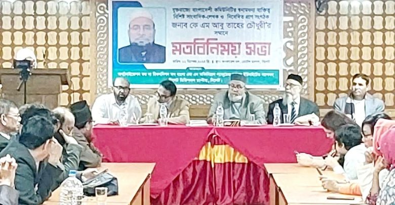 যুক্তরাজ্যে বাংলাদেশি কমিউনিটির উজ্জ্বল মুখ, বিশিষ্ট সাংবাদিক, কলামিস্ট ও সাহিত্যিক, স্বদেশে এবং বহির্বিশ্বে মানবকলাণ ও সেবামূলক বিভিন্ন সংস্থার প্রতিষ্ঠাতা, সভাপতি ও কর্ণধার, অতুলনীয় মানবসেবী, অর্গানাইজেশন ফর দ্য রিকগনিশন অব বাংলা এ্যাজ এন অফিসিয়াল ল্যাঙ্গুয়েজ অব দ্য ইউনাইটেড ন্যাশনস্-এর কেন্দ্রীয় ভাইস প্রেসিডেন্ট কে এম আবু তাহের চৌধুরীর সম্মানে বৈশ্বিক এ সংগঠনের সিলেট ডিভিশনাল চ্যাপ্টারের উদ্যোগে গত ২২ ডিসেম্বর শনিবার সন্ধ্যায় বিভাগীয় নগরী সিলেটের উত্তর জেলরোডস্থ হোটেল ডালাস-এর কনফারেন্স হলে এক মতবিনিময় অনুষ্ঠানের আয়োজন করা হয়।