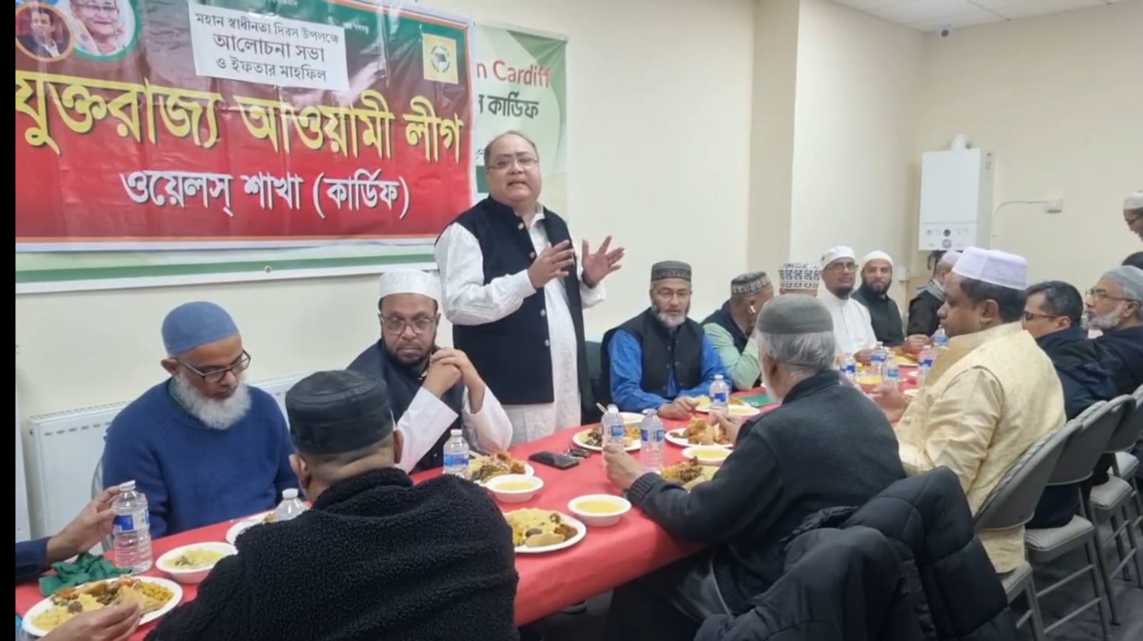 ইউকে ওয়েলস আওয়ামী লীগের সভাপতি সাবেক ছাত্রনেতা মোহাম্মদ মকিস মনসুর এর সভাপতিত্বে এবং ওয়েলস আওয়ামী লীগের সাধারন সম্পাদক প্রাক্তন ছাত্রনেতা এম.এ.মালিক এর পরিচালনায় ইফতার পূর্ব আলোচনা সভায় সহ সভাপতি এস এ রহমান মধু, যুগ্ম সাধারণ সম্পাদক গোলাম মর্তুজা, যুগ্ম সাধারণ সম্পাদক লিয়াকত আলী, সাংগঠনিক সম্পাদক মল্লিক মোসাদ্দেক আহমেদ, সাবেক ছাত্রনেতা আব্দুর রাজ্জাক রুবেল, দফতর সম্পাদক শেখ মোহাম্মদ আনোয়ার, ওয়েলস যুবলীগের সাবেক সভাপতি জয়নাল আহমদ শিবুল, ব্যারিস্টার আব্দুর রাকিব, সাবেক যুবনেতা আব্দুল ওয়াহিদ বাবুল, সাবেক ছাত্রনেতা আকতার উজ্জামান কোরেশি নিপু, বাংলাদেশ ওয়েলফেয়ার এর সেক্রেটারি আসকর আলী,ওয়েলস যুবলীগের সভাপতি ভিপি সেলিম আহমদ, সিনিয়র সহ সভাপতি আবুল কালাম মুমিন, মাহবুবু রহমান, আসাদ মিয়া, ও সাজেল আহমেদ, সহ আওয়ামীলীগ, যুবলীগ নেতৃবৃন্দ ও প্রাক্তন ছাত্রনেতারা বক্তব্য রাখেন। জাতির জনক বঙ্গবন্ধু শেখ মুজিবুর রহমান, জাতীয় চার নেতা সহ মুক্তিযোদ্ধে অবদানকারী সবার মাগফেরাত সহ মুসলিম উম্মার সূখ শান্তি ও সমৃদ্ধি কামনা করে দোয়া পরিচালনা করেন ক্বারী শাহ মোহাম্মদ তসলিম আলী, সভাপতির সাগত বক্তব্যে ওয়েলস আওয়ামী লীগের সভাপতি প্রাক্তন ছাত্রনেতা মোহাম্মদ মকিস মনসুর পোগ্রামে উপস্থিত সবাইকে আন্তরিক ধন্যবাদ ও কৃতজ্ঞতা জানিয়ে বলেন, ১৯৭১ সালে জাতির জনক বঙ্গবন্ধু শেখ মুজিবুর রহমান এর আহ্বানে সাড়া দিয়ে বাঙালি জাতি পাকিস্তানি হানাদার বাহিনীর বিরুদ্ধে যুদ্ধে ঝাঁপিয়ে পড়ে এবং দীর্ঘ ৯ মাস সশস্ত্র লড়াই শেষে একাত্তরের ১৬ ডিসেম্বর পূর্ণ বিজয় অর্জন করে। বিশ্বের মানচিত্রে জন্ম নেয় স্বাধীনতা সার্বভৌম বাংলাদেশ মুক্তিযুদ্ধের সকল শহিদদের স্মৃতির প্রতি বিনম্র শ্রদ্ধাঞ্জলি জানিয়ে তিনি আরও বলেন স্বাধীনতা অর্জনের চেয়ে স্বাধীনতা রক্ষা করা কঠিন। স্বাধীনতা রক্ষার জন্য প্রজন্ম থেকে প্রজন্মান্তরে স্বাধীনতার চেতনা লালন করে তা বহমান রাখতে হবে এই হোক আমাদের দীপ্ত শপথ।