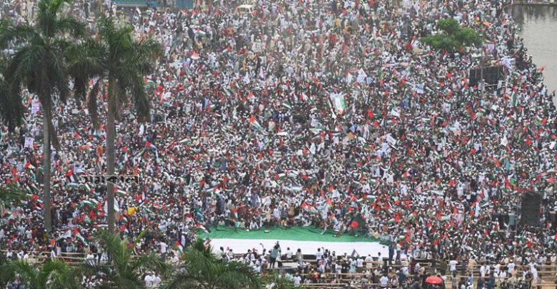 ‘মার্চ ফর গাজা’ শীর্ষক কর্মসূচিকে কেন্দ্র করে সকাল থেকেই ঢাকার প্রধান সড়কগুলোতে চলতে থাকে মিছিল, শ্লোগান আর পতাকার তরঙ্গ । ফিলিস্তিনে গনহত্যা ও নির্যাতনের প্রতিবাদে গর্জে ওঠে ঢাকার আকাশ। “ফিলিস্তিনের মুক্তি চাই”, “ইজরায়েলি নিপীড়ন বন্ধ করো” এমন শতশত শ্লোগানে কেঁপে ওঠে রাজধানী।