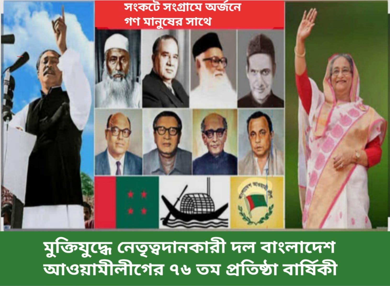 আমাদের জন্যে বাংলাদেশ শুধুই একটি মানচিত্র নয় বরং ৩০ লক্ষ শহীদের রক্ত এবং তিন লক্ষ বীরাঙ্গনার সম্ভ্রমের বিনিময়ে পাওয়া এক সম্পদ। জাতির জনক বঙ্গবন্ধু শেখ মুজিবুর রহমানের নেতৃত্বে লক্ষ লক্ষ বাঙ্গালী মুক্তিযুদ্ধে অংশ নেয়।প্রত্যেকটি যুদ্ধেরই একটি পটভূমি থাকে। ১৯৭১ এর মুক্তিযুদ্ধও ১৯৬৬ এ বঙ্গবন্ধুর ছয় দফা, ৬৯ এর গণ আন্দোলন. ১৯৭০ এ আওয়ামীলীগের নির্বাচনে বিপুল ব্যবধানে জয়লাভ করা সহ কয়েকটি ঘটনার পর্যায়ক্রমিক রূপান্তর।  ১৯৫২ সালের ভাষা আন্দোলন যেখানে আওয়ামী লীগের নেতাকর্মী ও ছাত্র সংগঠনের সদস্যরা অংশ নেয়, সেই আন্দোলনও এই যুদ্ধের পটভূমি রচনায় সহায়তা করে। ৭৬ বছরের দীর্ঘ যাত্রায়, এই দলটি বাংলাদেশের ইতিহাসের সকল সংগ্রামে নেতৃত্ব দিয়েছে। ১৯৭৫ এর ১৫ আগস্ট বিরাট এক কালো মেঘ ঢেকে দেয় স্বাধীনতার আলো। বাঙালীর ঐতিহ্য, সংস্কৃতি, ভাষা, বাঙালীর আত্মনিয়ন্ত্রণ, স্বায়ত্তশাসন সর্বশেষ স্বাধীনতার মূলমন্ত্রে দীক্ষিত হয়ে গড়ে ওঠা আওয়ামী লীগ তার আদর্শ এবং উদ্দেশ্যে অটল থেকেও সময়ের বিবর্তনে একটি আধুনিক প্রতিষ্ঠান হিসেবে আজ প্রতিষ্ঠিত। বাংলাদেশ আওয়ামী লীগ শুধু দেশের পুরনো ও সর্ববৃহৎ রাজনৈতিক দলই নয়, এটি হচ্ছে গণতন্ত্র ও অসাম্প্রদায়িক ভাবাদর্শের মূলধারাও। প্রতিষ্ঠা থেকে শুরু করে এ পর্যন্ত নানা আন্দোলন-সংগ্রামের মধ্য দিয়ে আওয়ামী লীগ আমাদের সমাজ-রাজনীতির এ ধারাকে নিরবচ্ছিন্নভাবে এগিয়ে নিচ্ছে।আমাদের প্রাণের এই সংগঠন এখন ও বাংলাদেশের মানুষের অন্তরে মাতৃ-সংগঠন হিসাবে স্থান করে নিয়েছে।