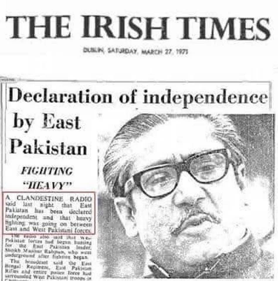 ১৭৫৭ সালের ২৩ জুন পলাশীর আম্রকাননে বাংলার স্বাধীনতার লালসূর্য অস্তমিত হয়েছিল। ব্রিটিশ শাসনের অবসানের পর ১৯৪৭ সালে সাম্প্রদায়িকও অবৈজ্ঞানিক দ্বি-জাতিতত্ত্বের ভিত্তিতে প্রায় ২হাজার কিলোমিটার দূরত্বে অবস্থিত পৃথক দুটি ভূ-খন্ড নিয়ে পাকিস্তান রাষ্ট্র গঠিত হয়।