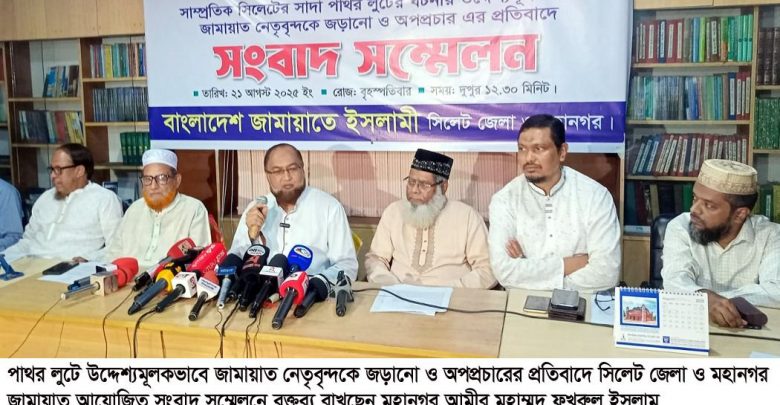 সিলেটে জামায়াতের জরুরি সংবাদ সম্মেলন “পাথর লুটে জড়ানো উদ্দেশ্যপ্রণোদিত অপপ্রচার”