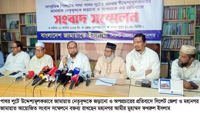 সিলেটে জামায়াতের জরুরি সংবাদ সম্মেলন “পাথর লুটে জড়ানো উদ্দেশ্যপ্রণোদিত অপপ্রচার”