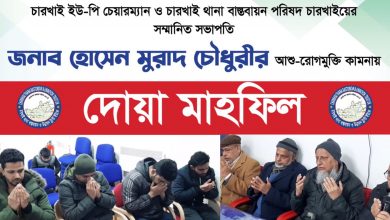 অসুস্থ্য চারখাই ইউপি চেয়ারম্যান হোসেন মুরাদ চৌধুরীর আশু-সুস্থতায় লন্ডনে দোয়া মাহফিল অনুষ্টিত